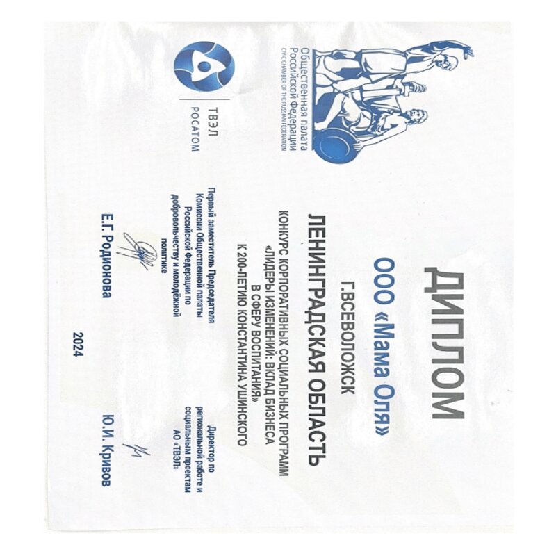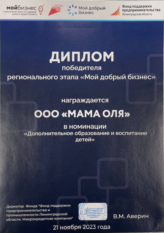 В саду есть закрытая, большая и хорошая детская площадка, что нам очень понравилось. Также сами посещения большие, просторные, что мы сравнили с другими организациями, где было тесно, неуютно. В саду Мама Оля просторно, светло, чисто, есть много игрушек, поэтому мы решили его посещать.